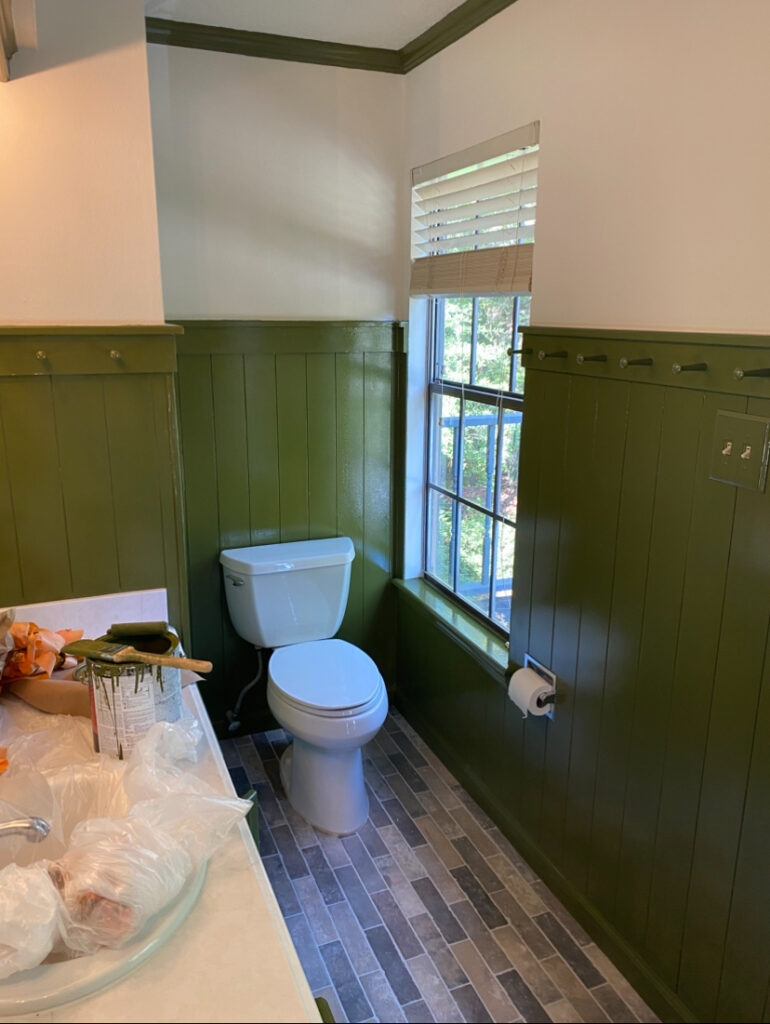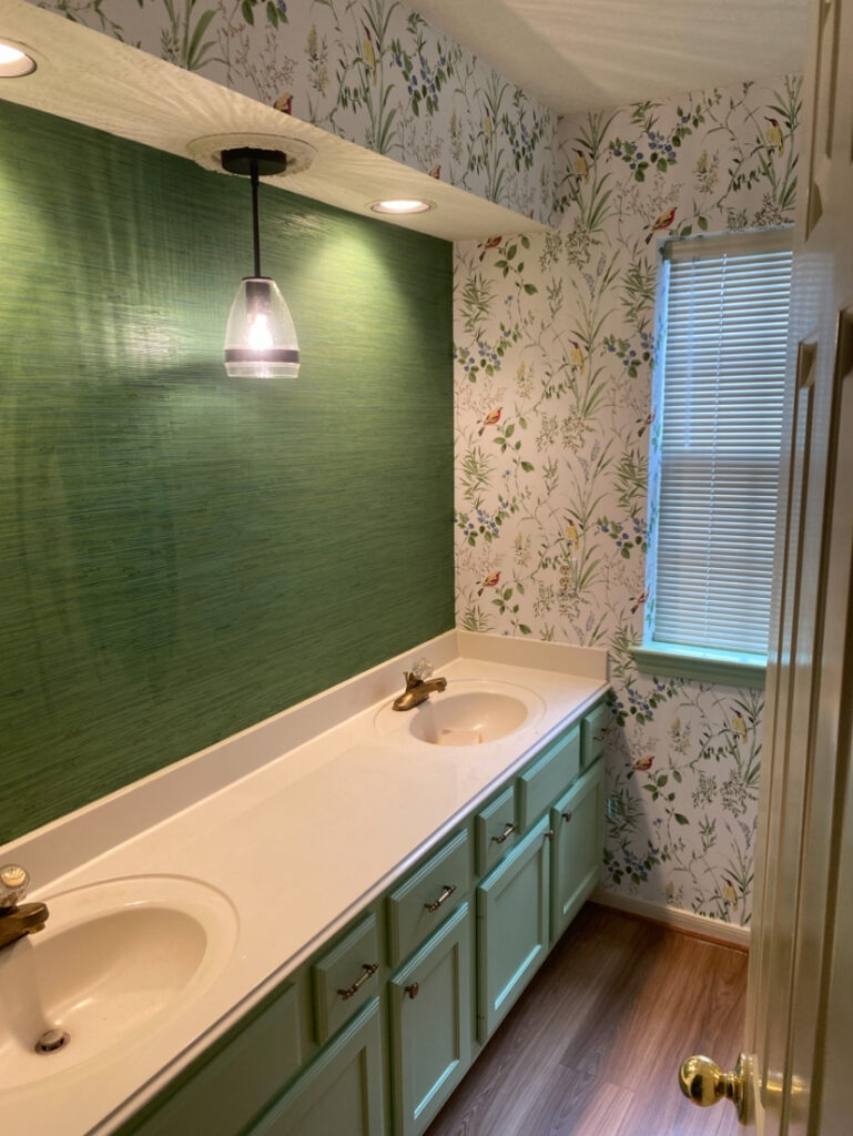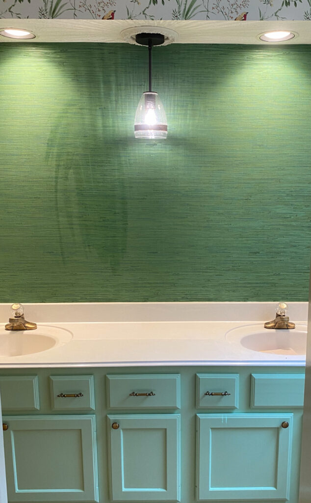Vanity Cabinet Paint, Grasscloth, and Wallpaper